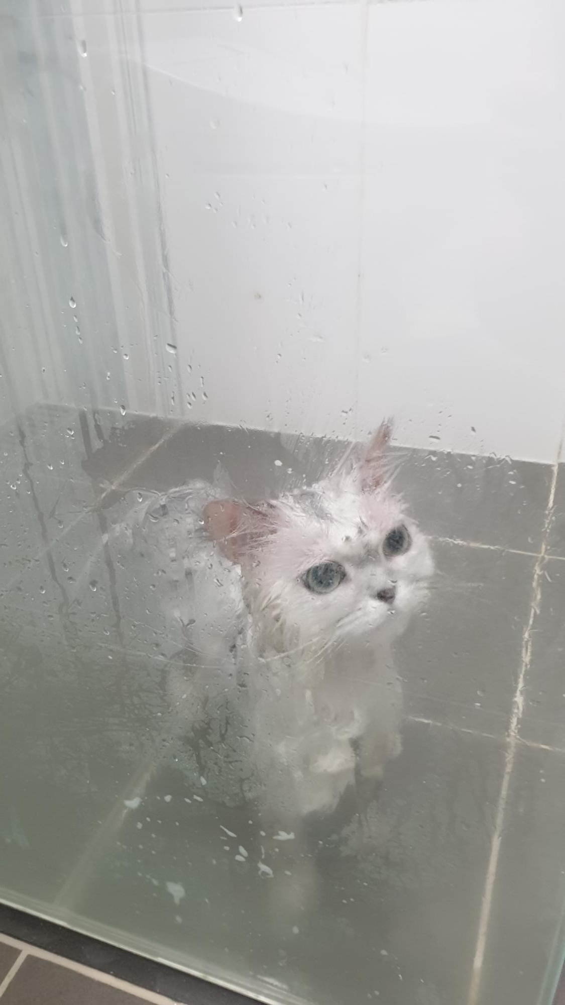 고양이용 샴푸로 꼬리와 엉덩이도 빼먹지 않고